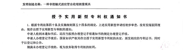我司获得水泥基材料波纹管法测定仪相关专利授权两项