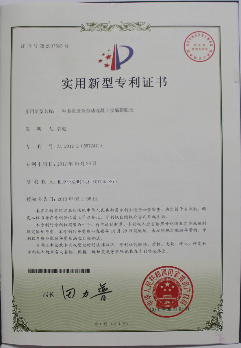 2)干燥收缩,适用于测定在无约束和规定的温湿度条件下硬化混凝土试件的收缩变形性能。参考了中国交通部JTJ270-98、中国电力行业标准DL/T5150-2001,美国ASTM C157/C157M-2003和ASTM C490-2007,英国BS标准BS1881:Part5,欧洲EN标准草案prEN480-3,日本标准JIS A1129:2001,GB/T50082。